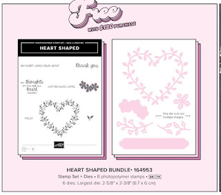 I chose a wonder set from the Sale-A-Bration catalog that is free with a $120 purchase (before S&H and tax). I got to order mine early since I'm a demonstrator. This is a stamp set with dies called Heart Shape.